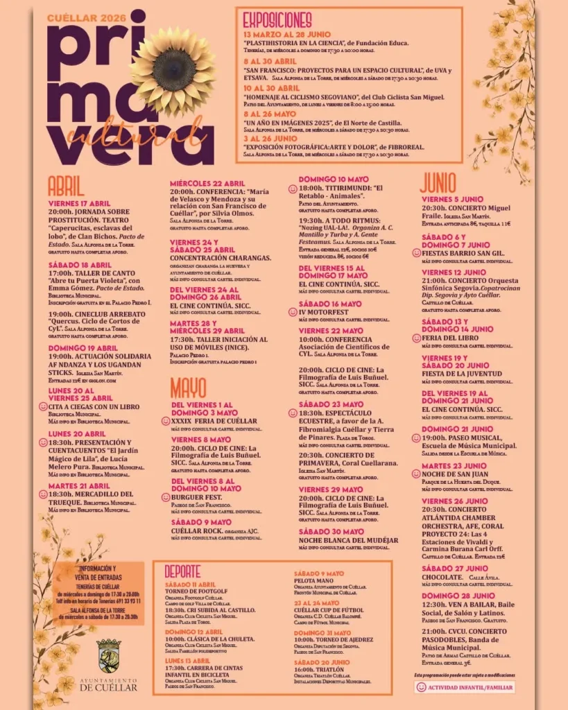 Ya puedes consultar la programación de primavera 2026 del Ayuntamiento de Cuéllar.